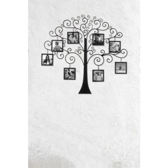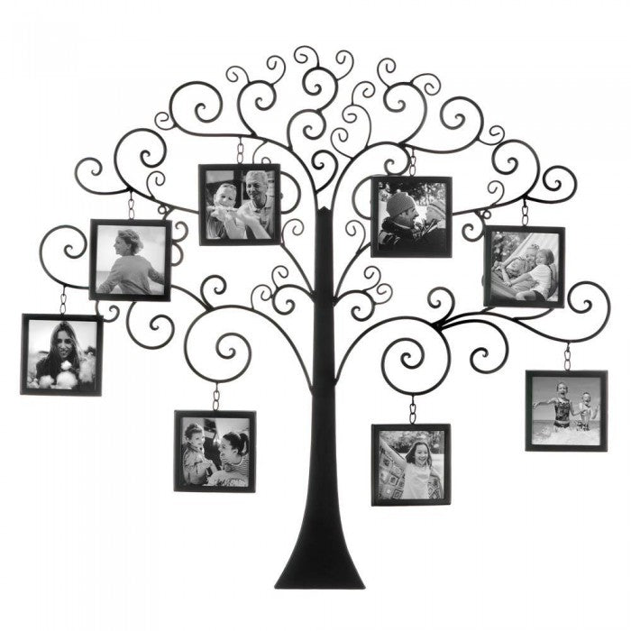 Proudly display your family's history with this beautiful family tree. This gorgeous wall hanging features a design with scrolling branches of metal to hold frames with pictures of your loved ones. Ideal as an accent piece alongside almost any style decor, from traditional to eclectic.